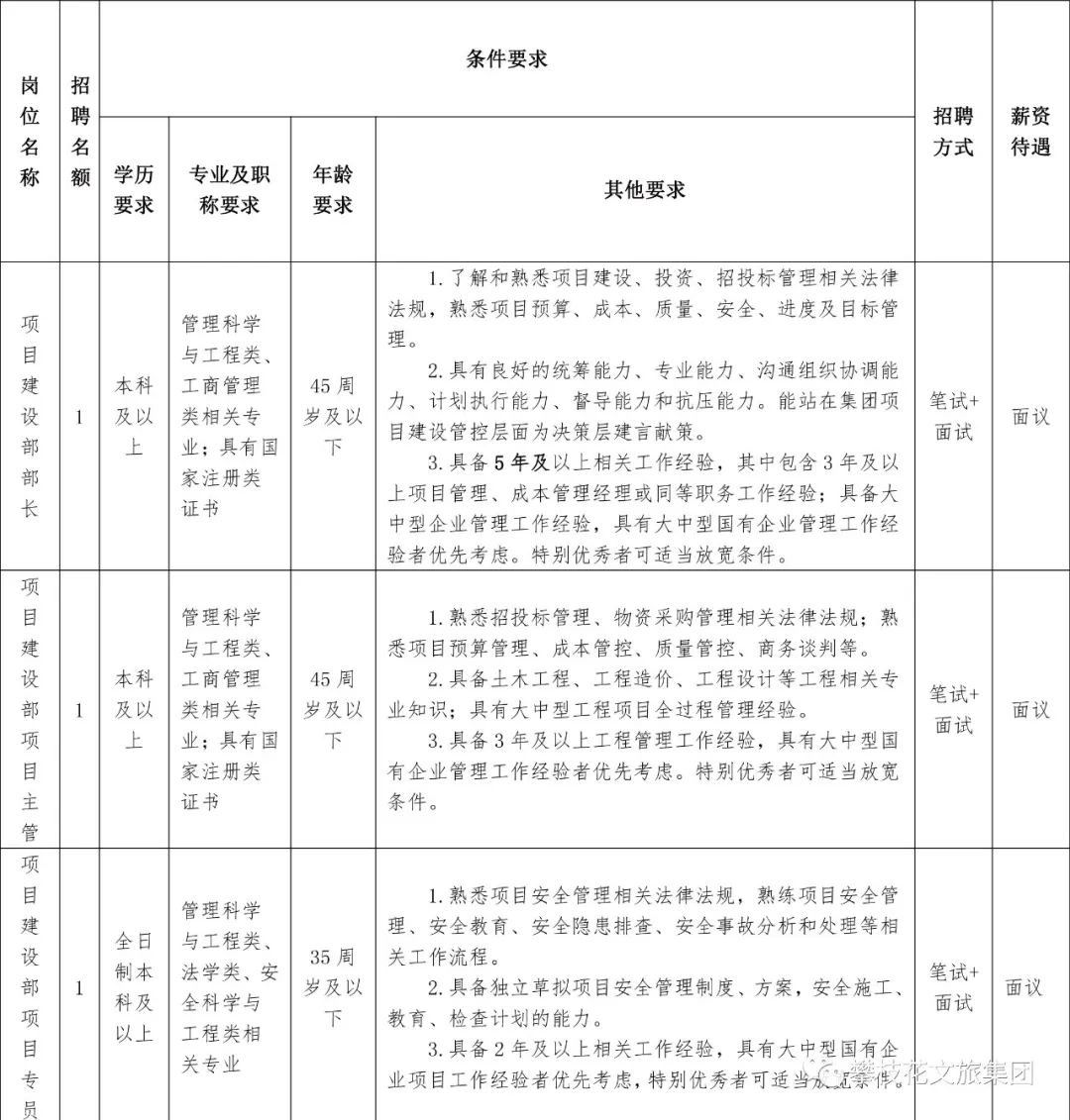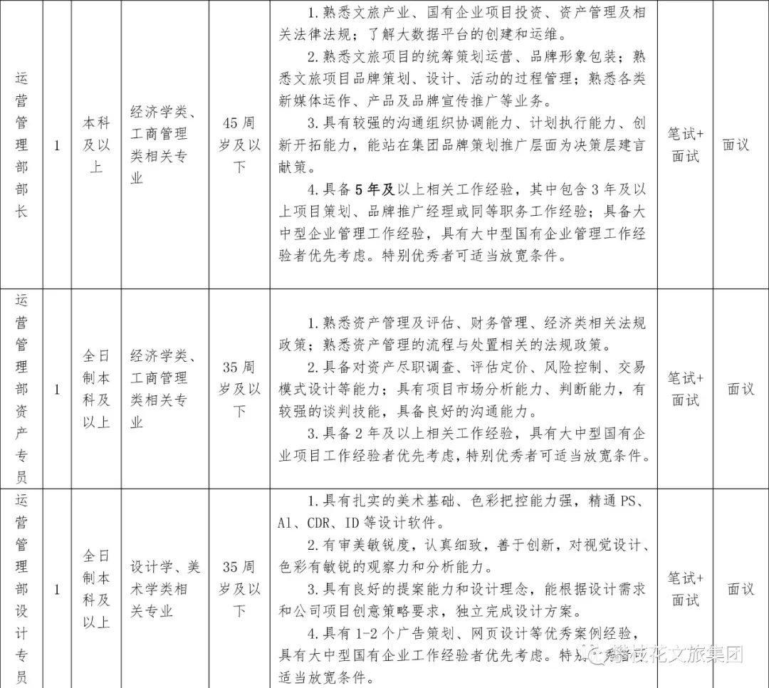 本次公開滾動招聘擬招聘文旅集團項目建設(shè)部部長1名、項目主管1名;項目專員1名;市場開發(fā)部部長1名、市場主管1名、市場專員2名;運營管理部部長1名、運營專員2名。具體條件見下:
